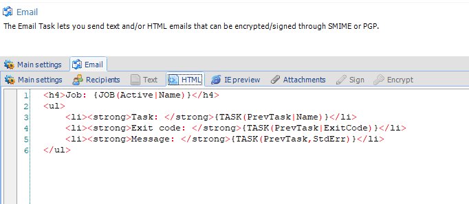 Yep you got it. And yes I was hoping to find a way to apply it to all existing jobs. We have a HUGE list of jobs and each of those jobs has anywhere from 6 to 24 tasks. At first I am just looking to get an alert when something fails. Down the road I would like that alert to include if it was a task within a job or something in the job itself and then some detailed info such as name of the task and the exit code or something. For now I would just settle for an email that lets me know something went sideways and to check the server.