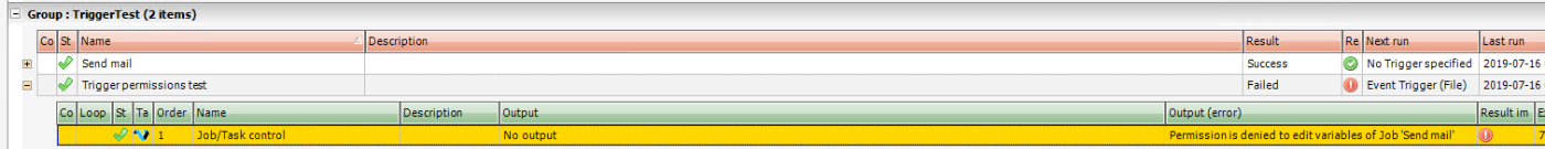3) Add a filetrigger to the second job. Pass the name of the file as the 'text' variable, ie you want to send an email with the name of the file. This fails, as you can see in the image above.
