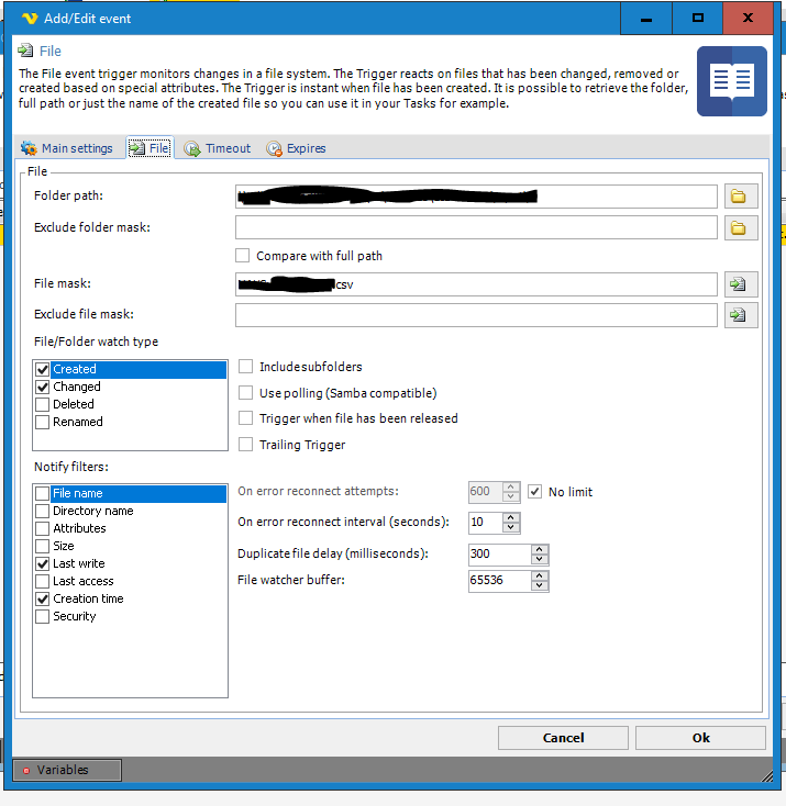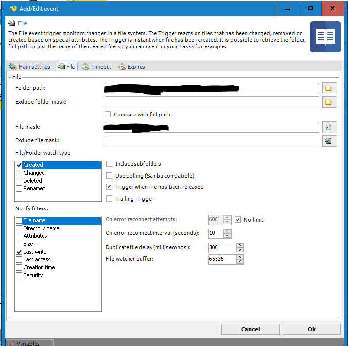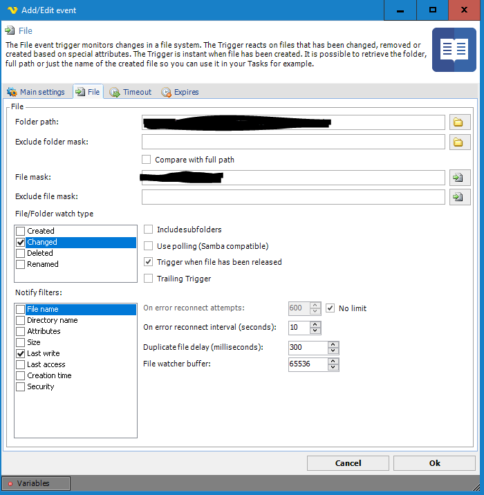 Setting "Trigger when file has been released" and only using "Changed", does not trigger for changes in excel, but does trigger if modifying in Notepad. The latter does not trigger for any modification.