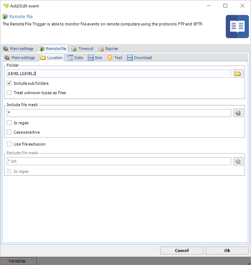 Using a remote file trigger to watch files being added to an FTP site in one folder which has several subfolders.